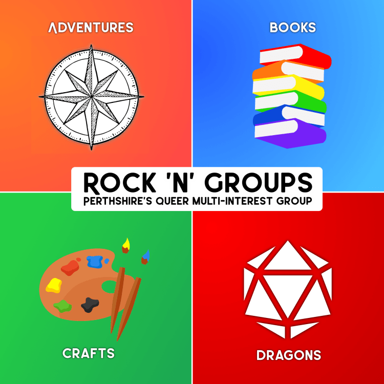 Rock ‘N’ Groups is our activity group for LGBTQ+ people with all sorts of interests. Including books, adventures, crafts or table top games!