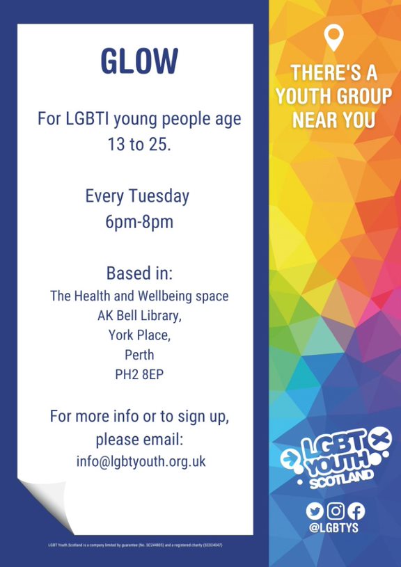 Perth’s own LGBT+ Youth Group, including activities and creative projects for those aged 13 – 25. See the link below for other LGBT Youth Scotland groups.