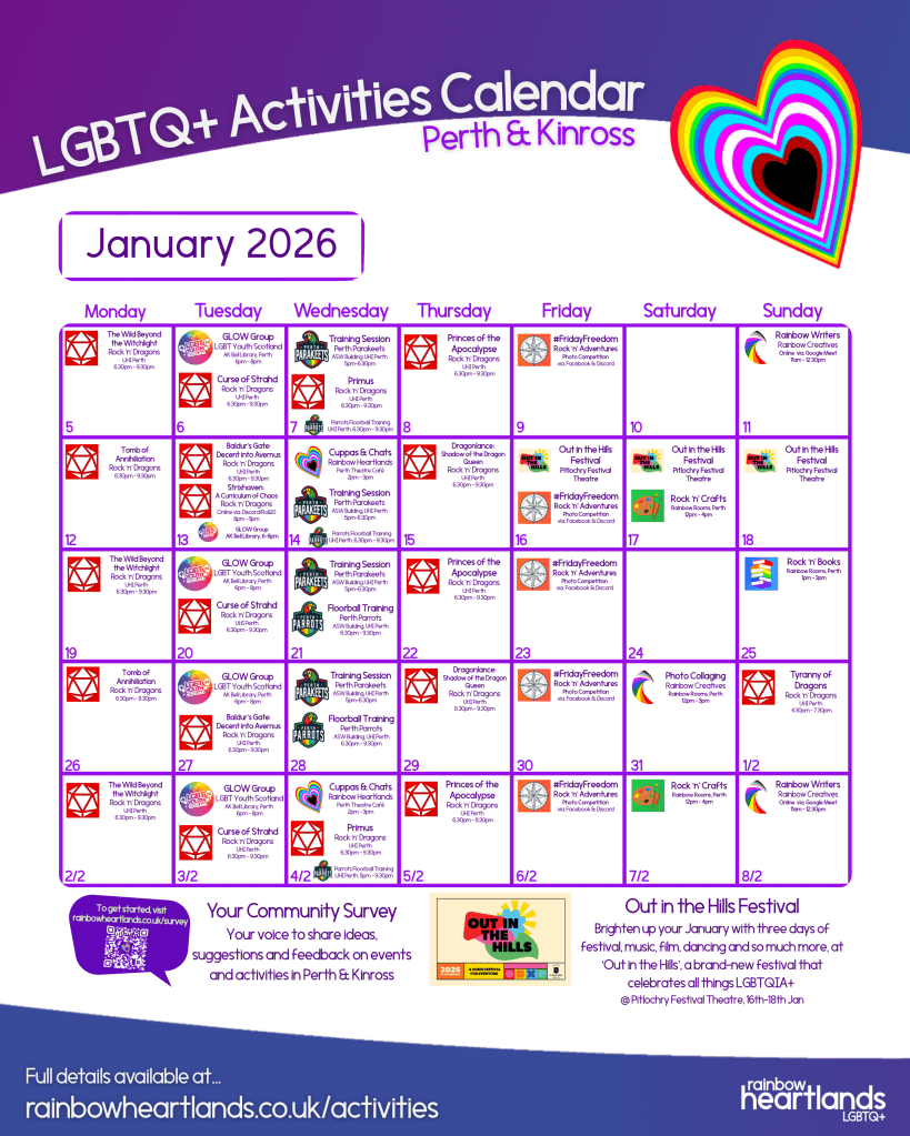 Our LGBT+ Activities Calendar for Perth & Kinross for each month can be found below.